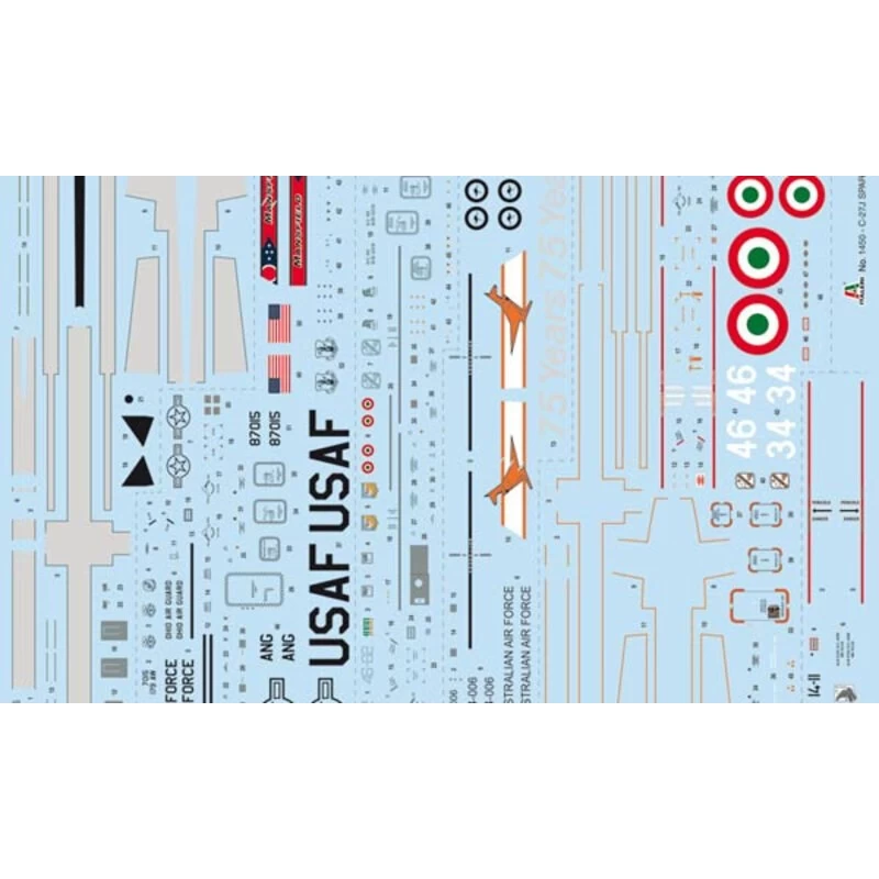 Cinq possibilités de décoration : USAF, Australie, Italie.
