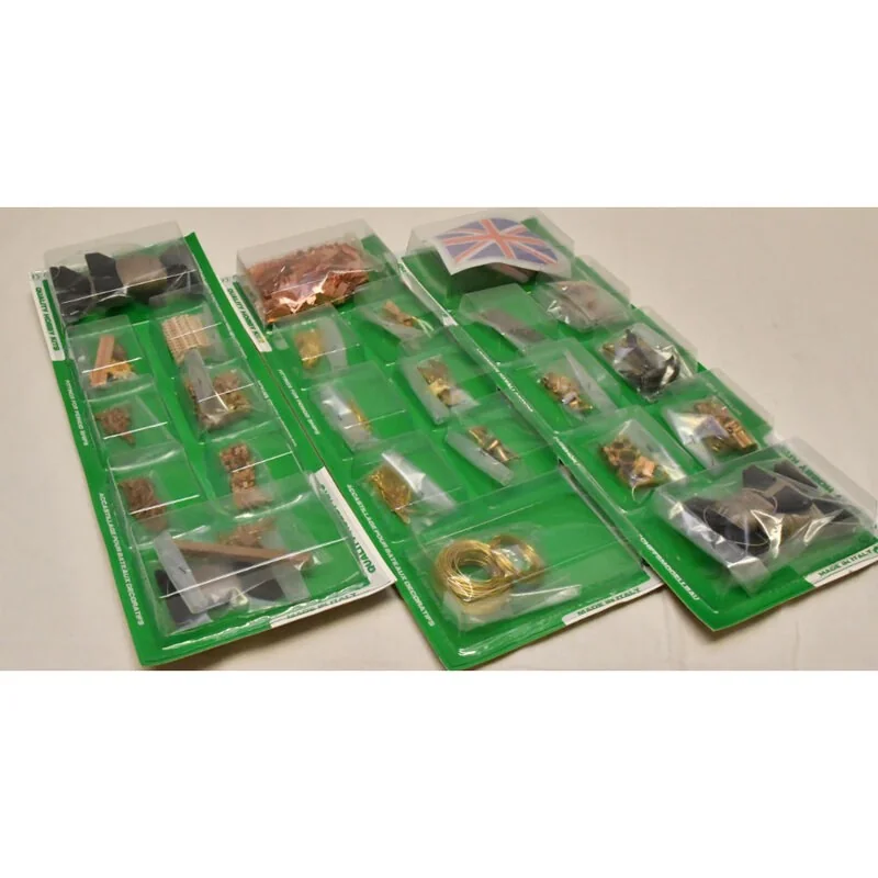 La boîte contient l’accastillage complet en bois, noyer, cuivre, laiton et six ornementations en bronze.