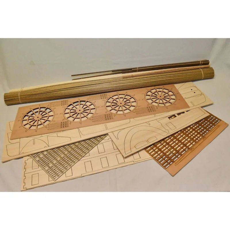 Le kit contient toutes les pièces découpées au laser, les accastillages en métal et en bois, les plans très détaillés et la notice.