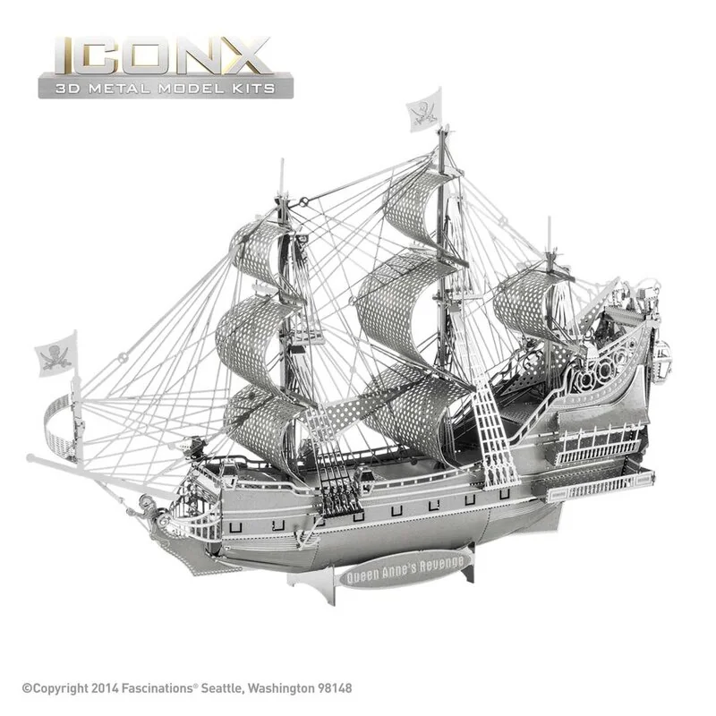 MetalEarth: ICONX – QUEEN ANNE’S REVENGE 10,7×4,3x15cm, maquette 3D en métal avec 2 feuilles, en boîte 13,5x22x2cm, 14+
