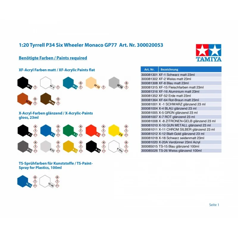 Maquette d’assemblage à l’échelle 1/20 représentant la Tyrrell P34 telle qu’elle est apparue lors du GP de Monaco, en 1977, avec le même demi-capot moteur que la saison précédente.